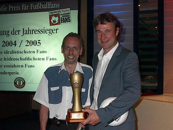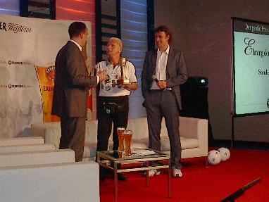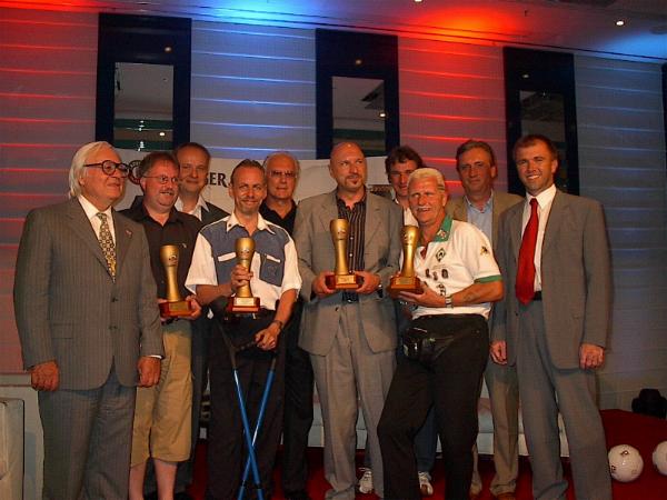Es folgten die Auszeichnungen in den Kategorien “Die leidenschaftlichsten Fans” (Gewinner: Peter Zapf), “Die sozialsten Fans” (Gewinner: Bayern-Fanclub Bachgau) und der Sonderpreis für den “Superfan” des SV Werder Bremen, dessen Biografie Ihr Euch unbedingt auf der ERDINGER-Seite (siehe Link im Bericht auf der “News”-Seite) unbedingt einmal durchlesen müßt, mehr Fan geht wohl nicht mehr.... |