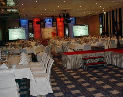 Schon das Ambiente im festlich eingerichteten Saal im “Schweizer Hof” Berlin ließ die Augen groß werden, eine prima Kulisse mit TV-fähiger Bühne und ansprechender Präsentationstechnik ließ ahnen, in welch großem Rahmen wir uns befanden. |